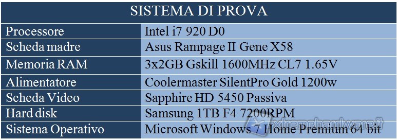 Abbiamo testato il dissipatore sul seguente sistema, montato su un banchetto aperto, con temperatura ambiente di circa 25°C. L’utilizzo finale di questo dissipatore sarà prevalentemente in una modalità Silent, a 1300 RPM oppure a 900 RPM, con singola o doppia ventola. Verranno quindi eseguiti test in configurazione Push,Pull (ventola installa posteriormente) e Push/Pull. Nella configurazione Push/Pull è stata utilizzata la Noctua NF-P12 come ventola in estrazione.