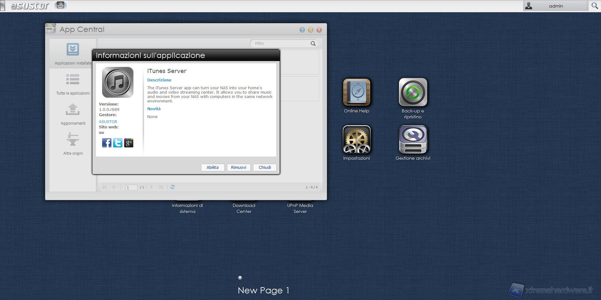 Anche in questo caso vanno fatti i complimenti ad Asustor che, nonostante sia appena entrata sul mercato dei NAS, mette a disposizione dell’utente una miriade di applicazioni ben sviluppate e complete.